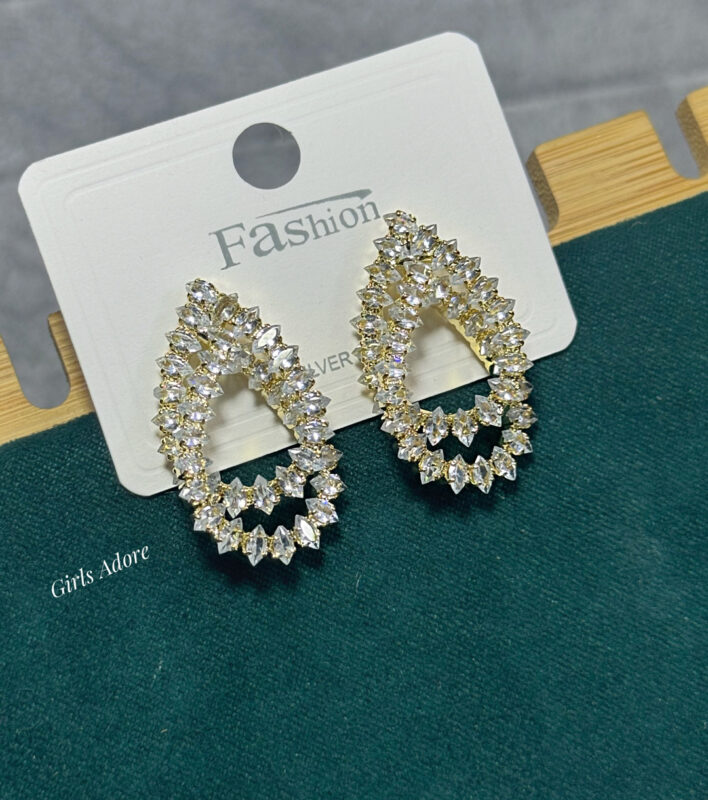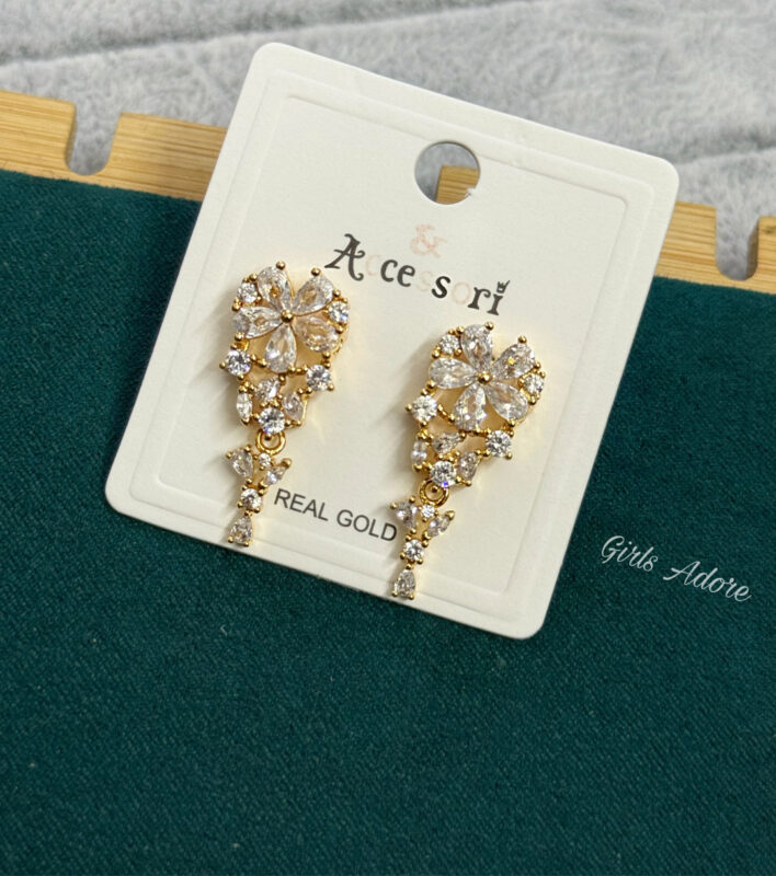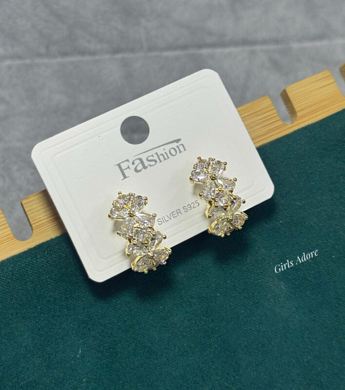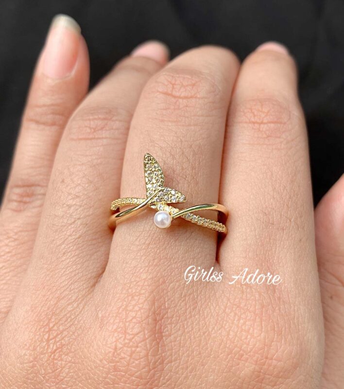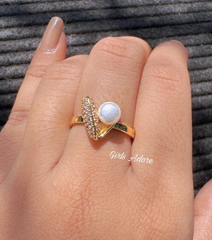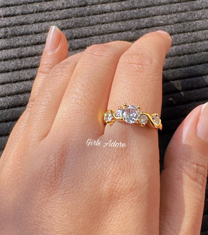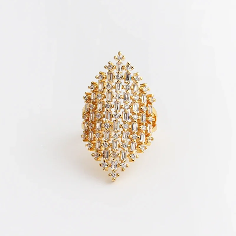 Gold-Plated Adjustable Leaf Design Ring with Sparkling Stones