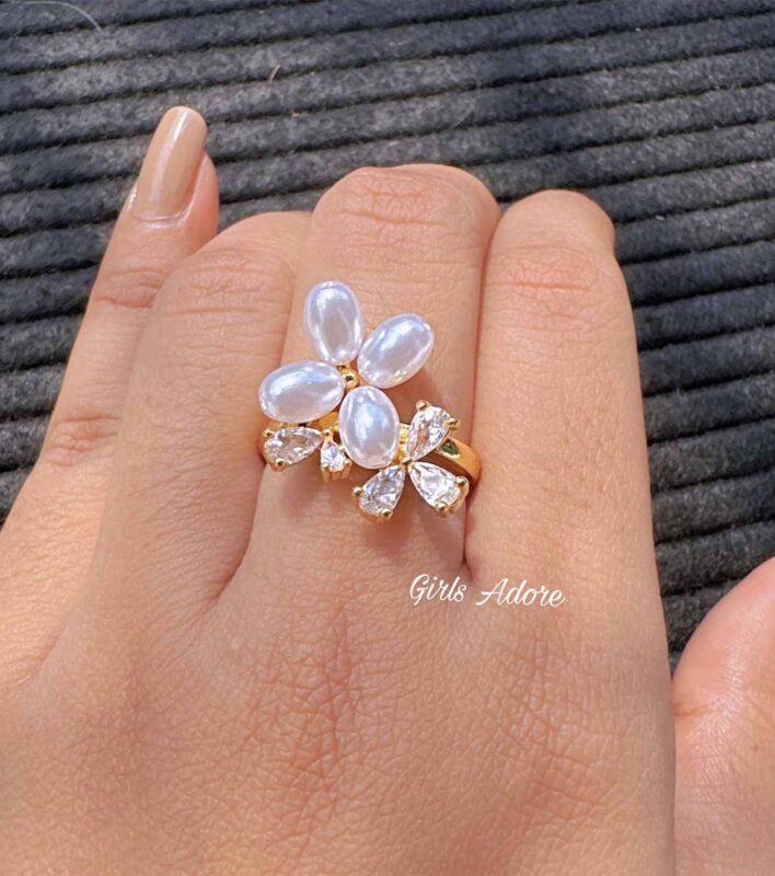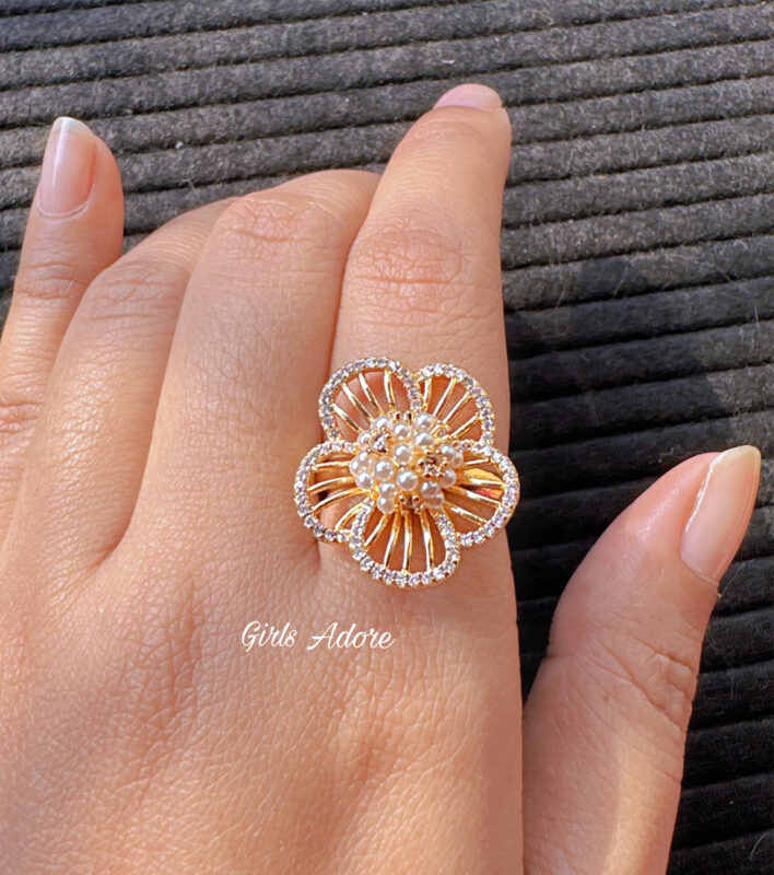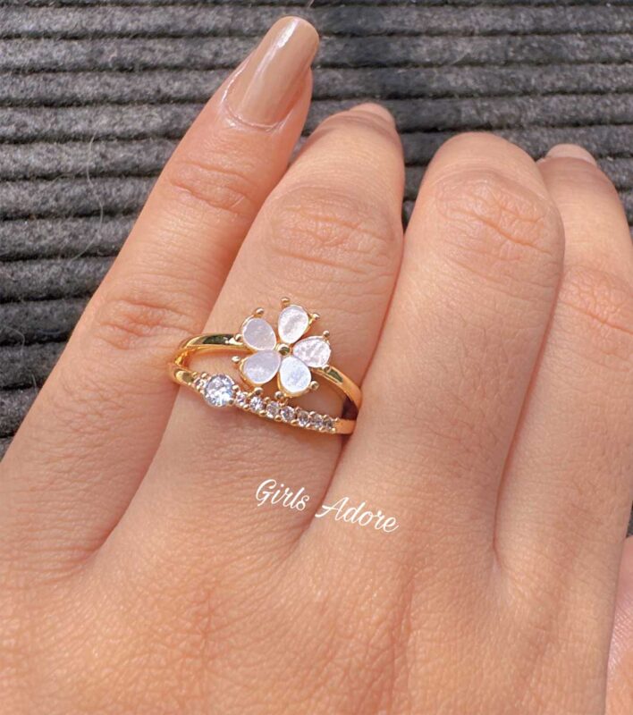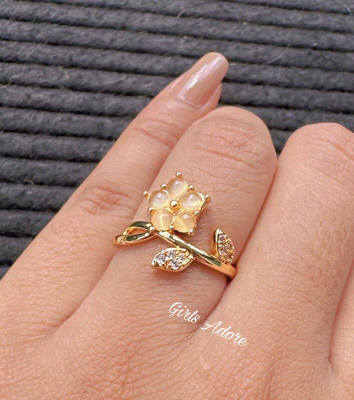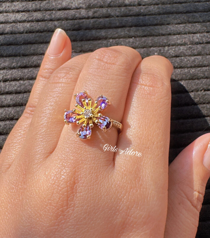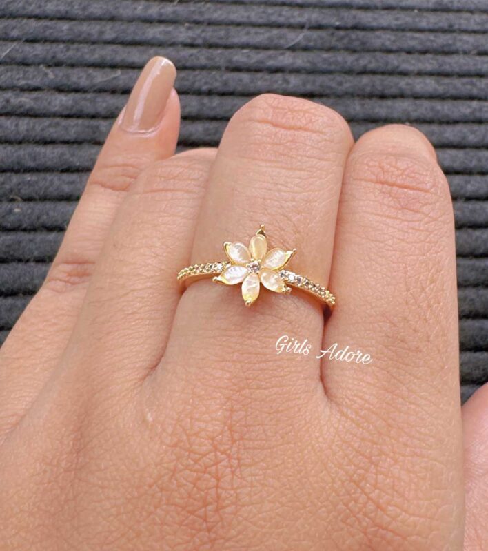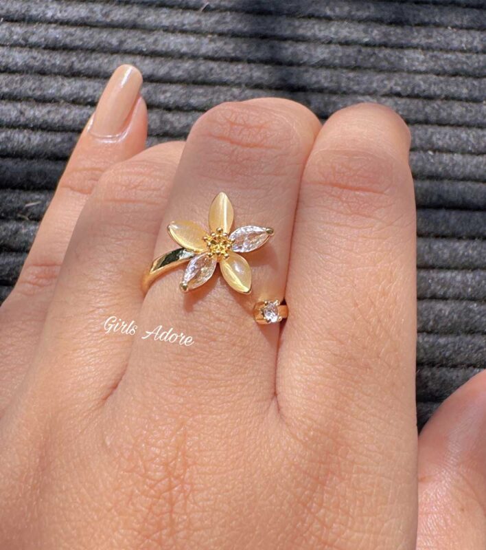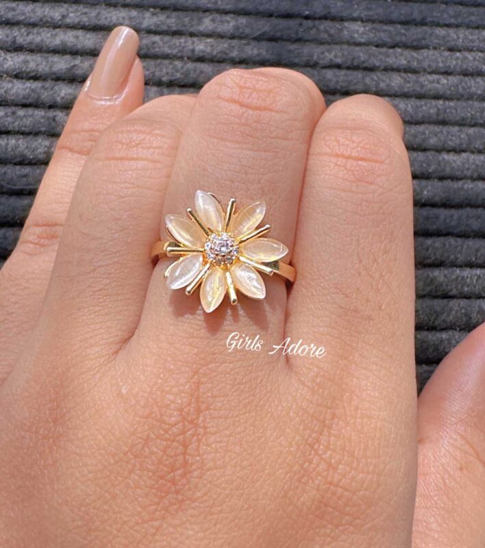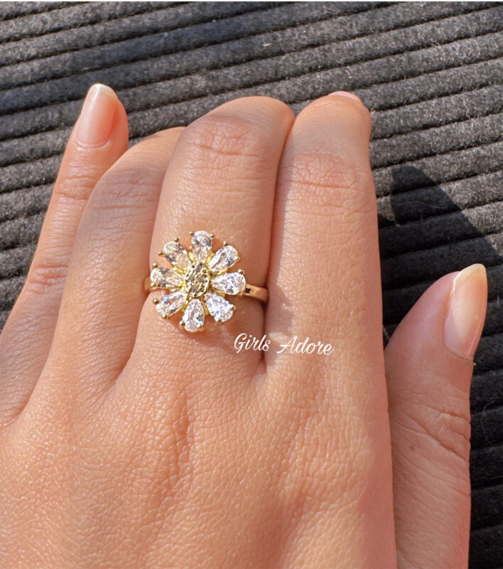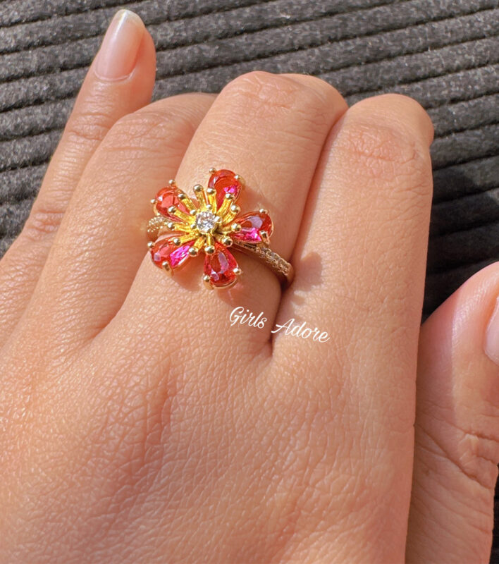 Adjustable Daisy Flower Ring with Pink & Gold Stones