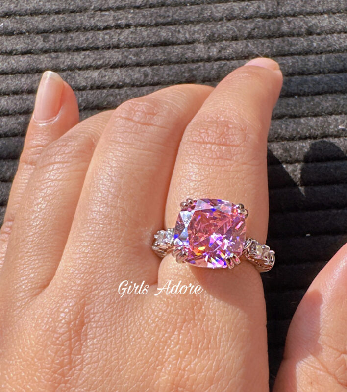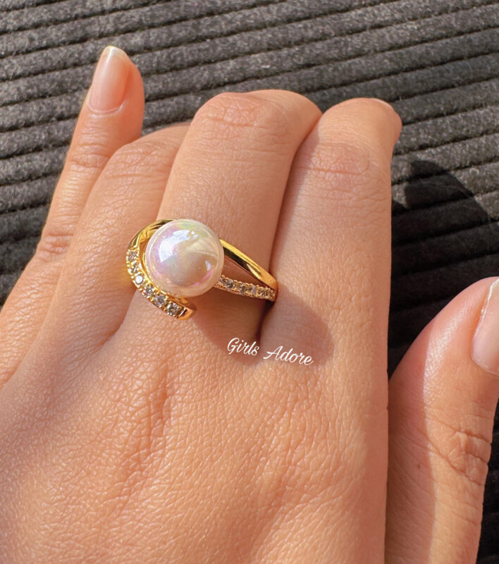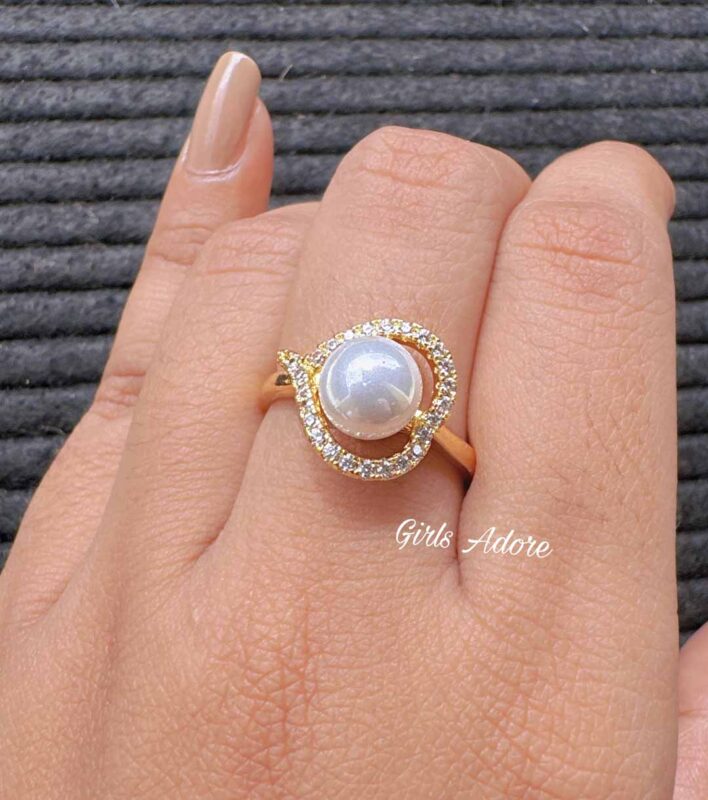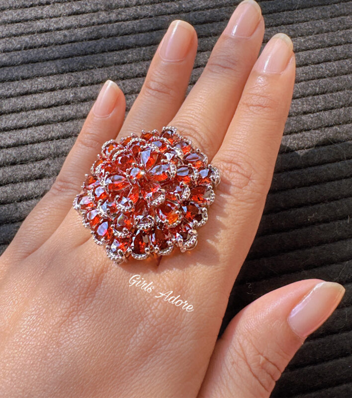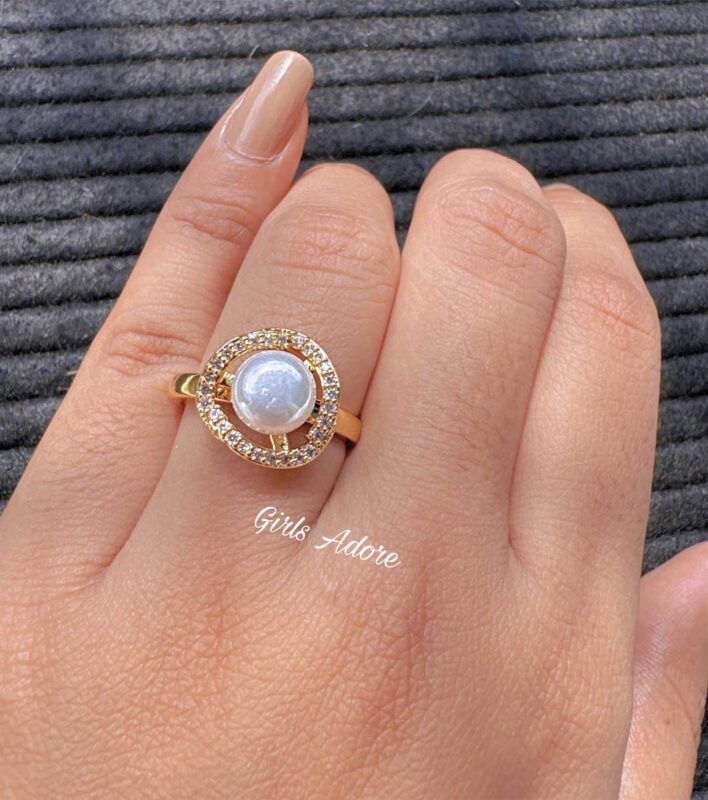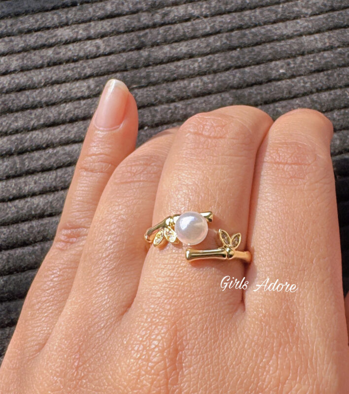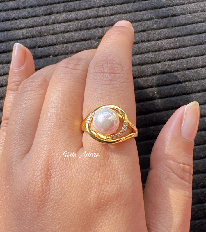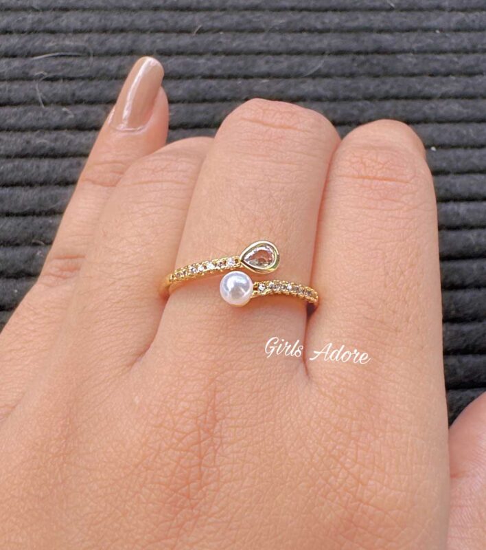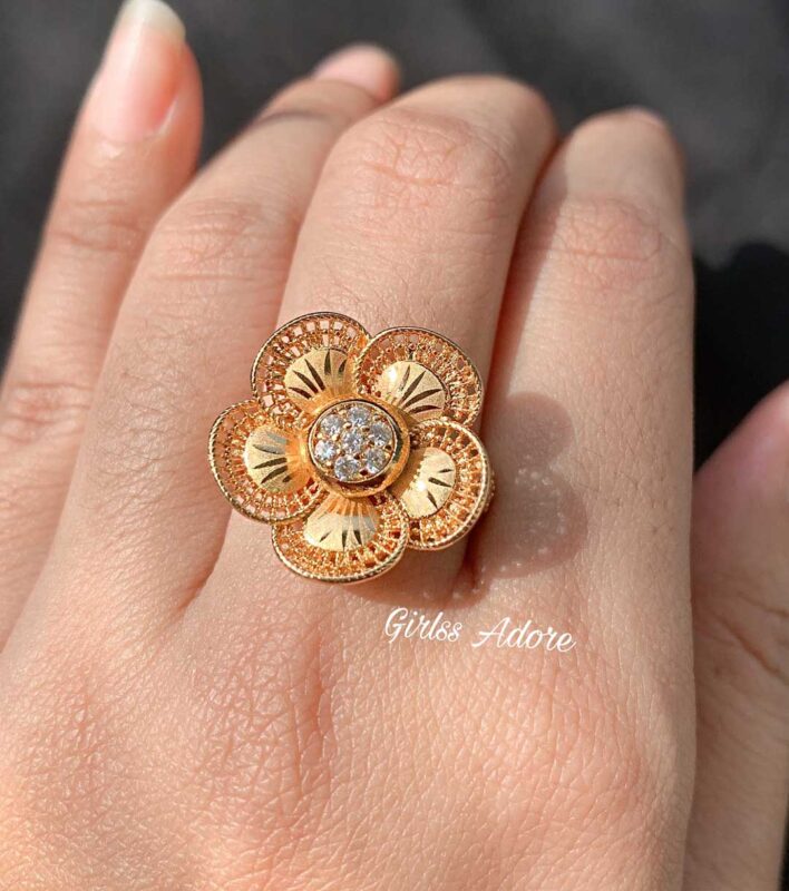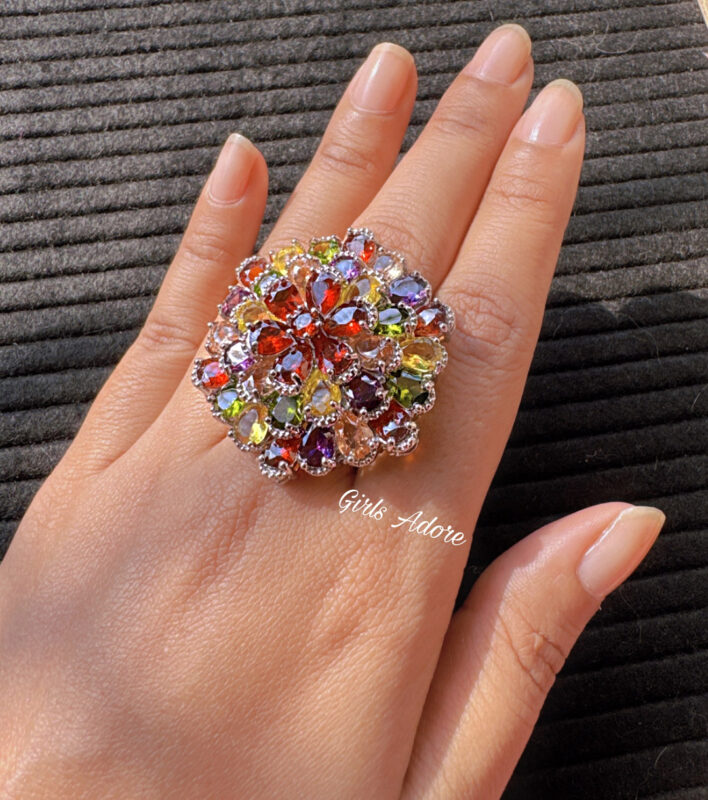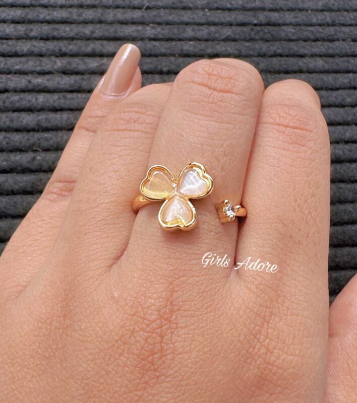 Adjustable Daisy Flower Ring with Pink & Gold Stones