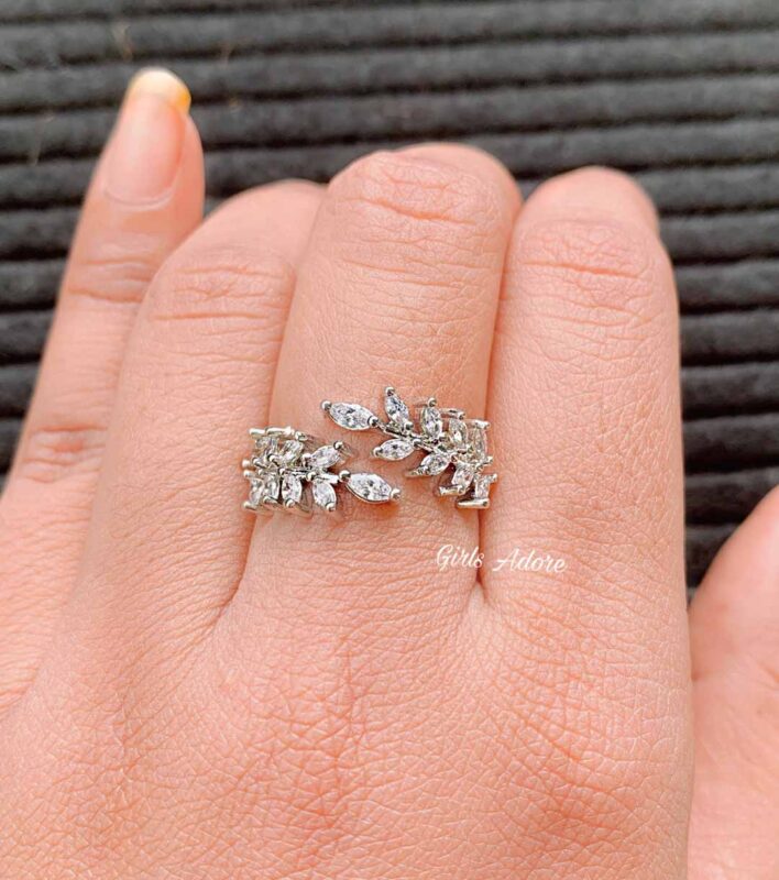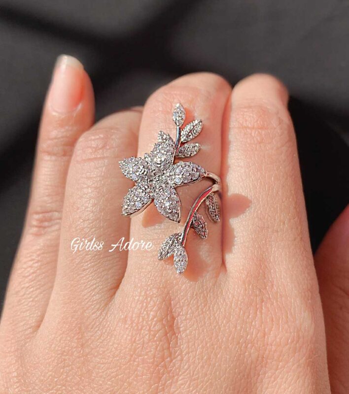 ✨ Adjustable Silver Floral Leaf Ring ✨