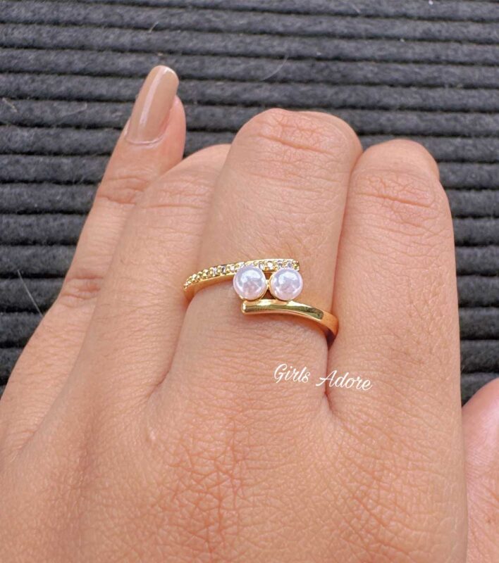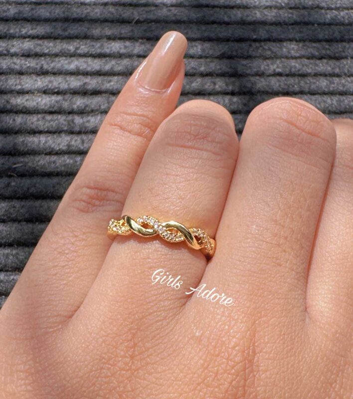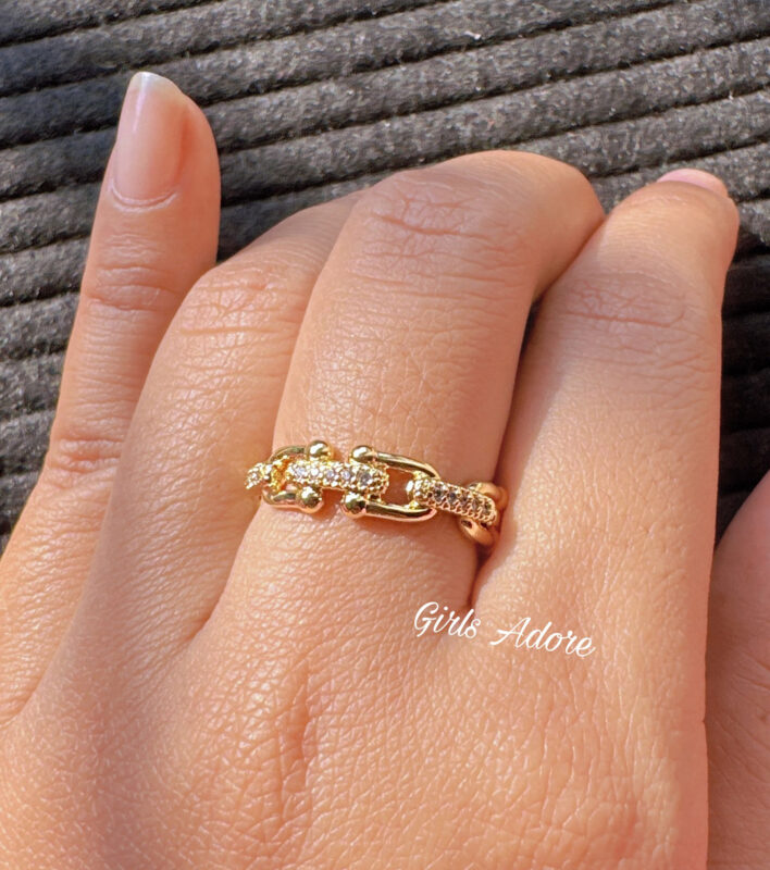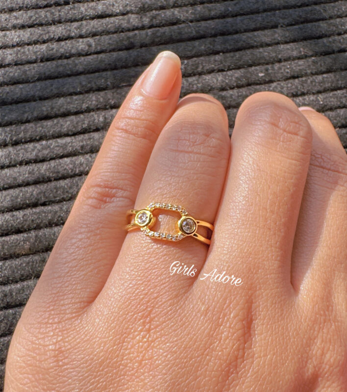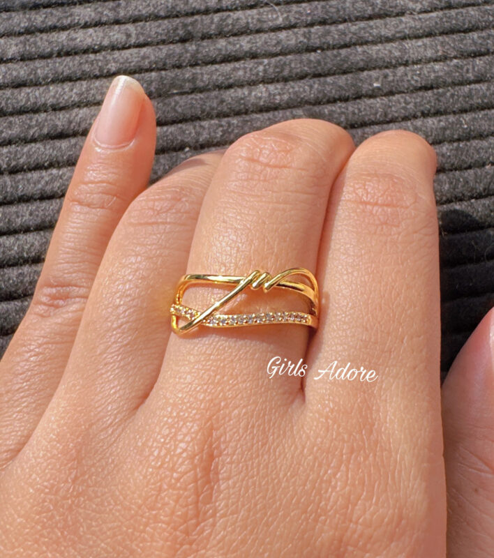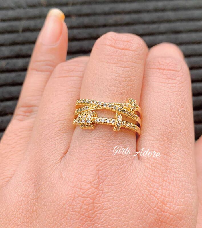 Adjustable Gold-Plated Triple Band Ring with Sparkling Stones