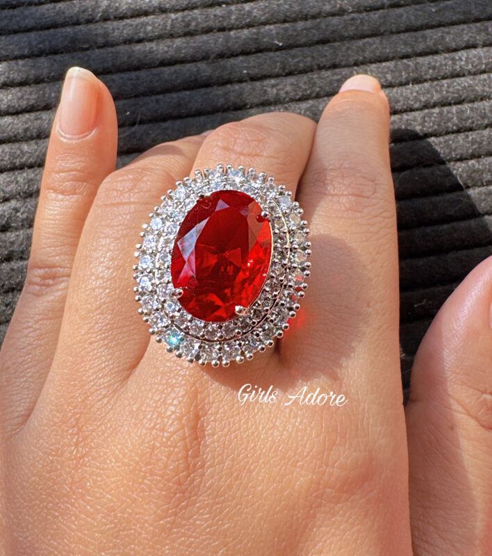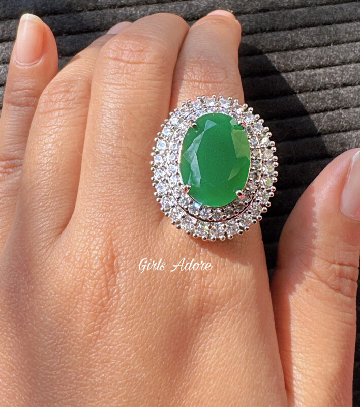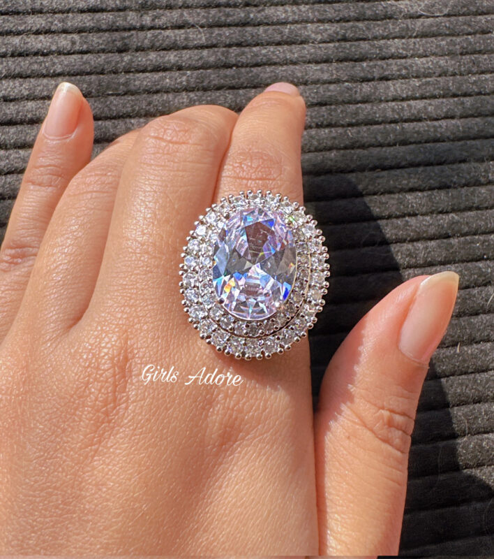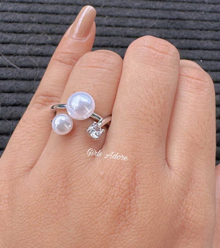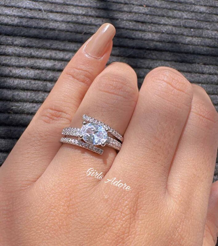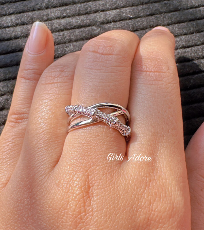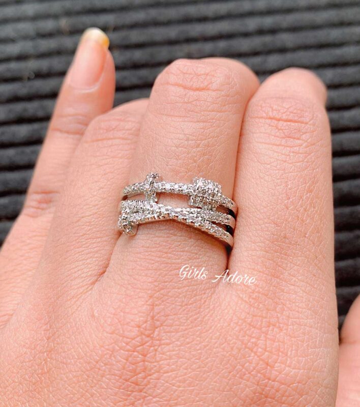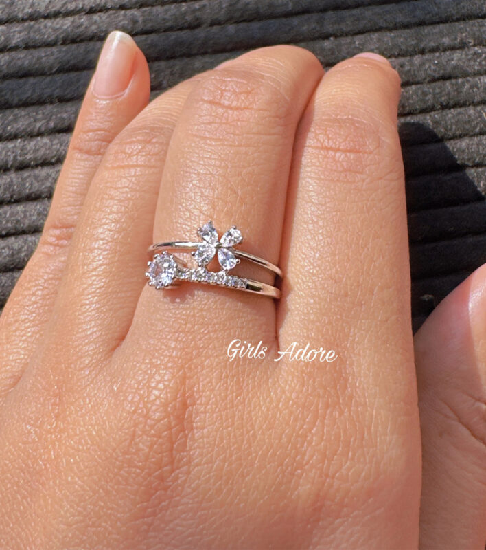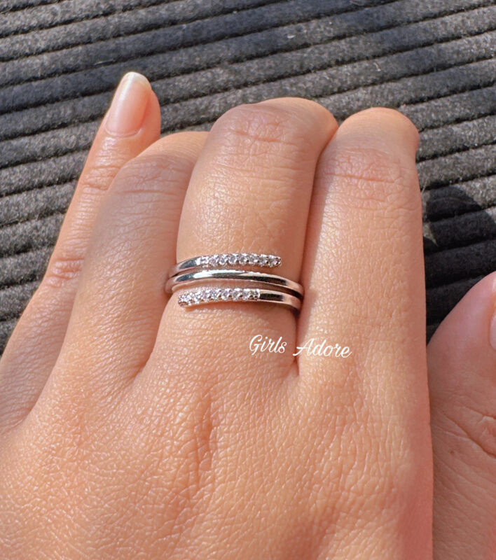 Triple Band Silver-Plated Adjustable Ring with Sparkling Stones