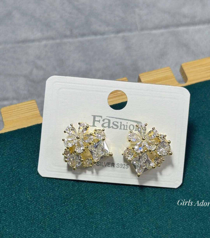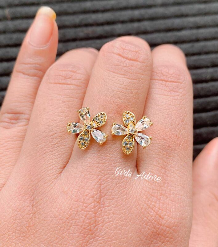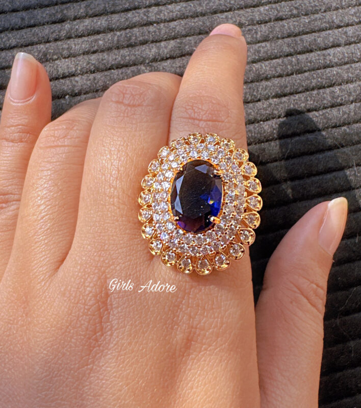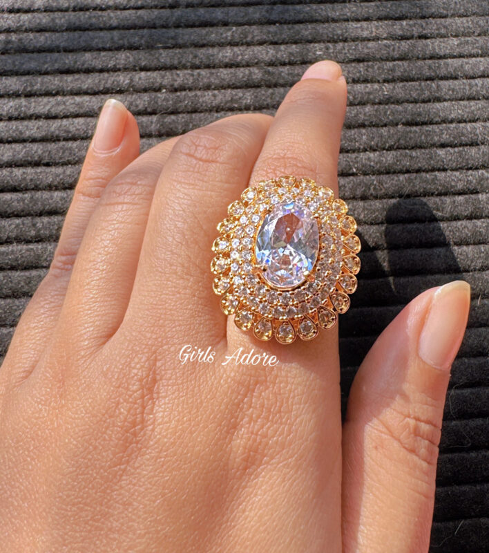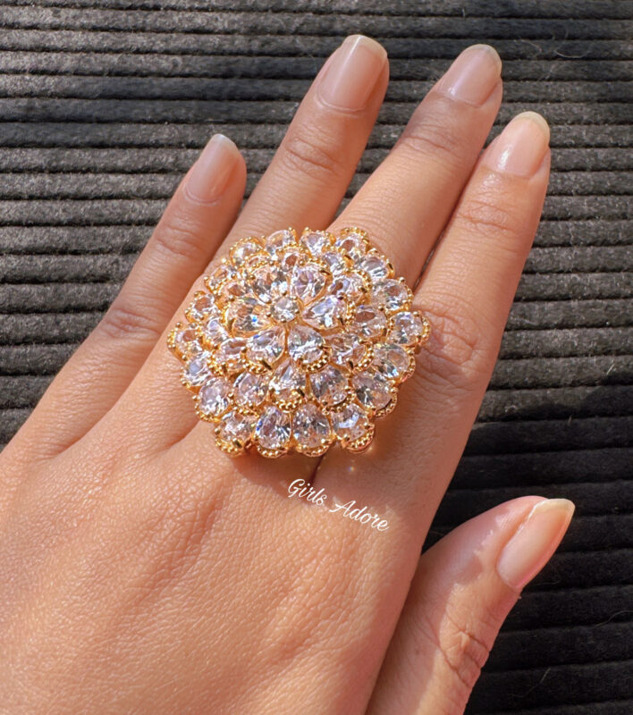 Gold-Plated Adjustable Double Flower Ring with Sparkling Stones