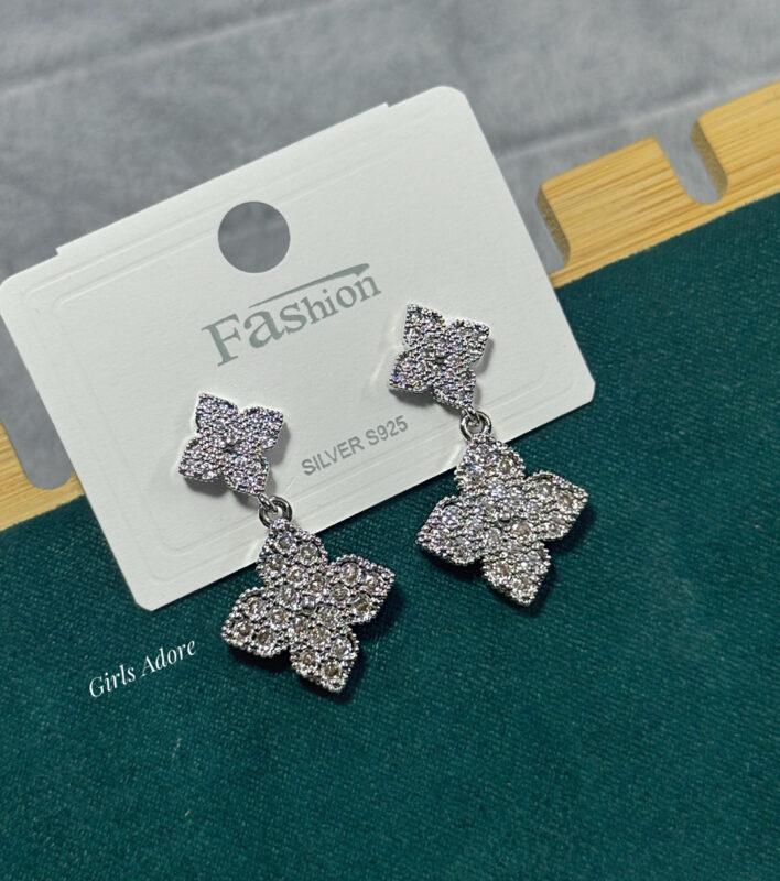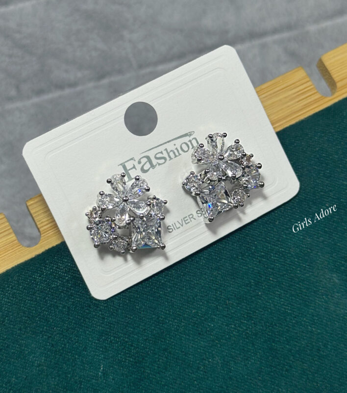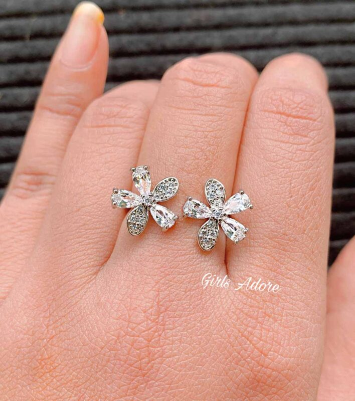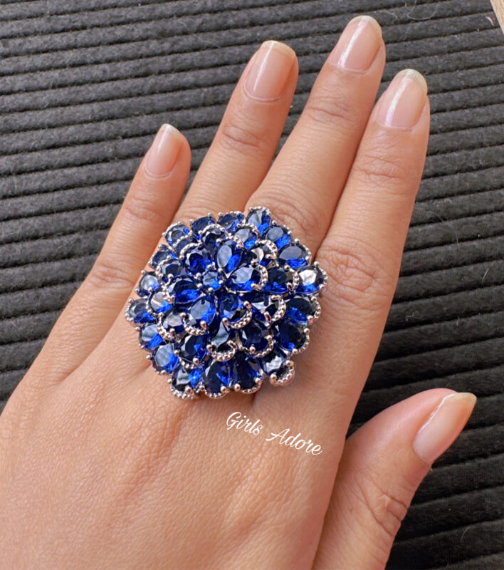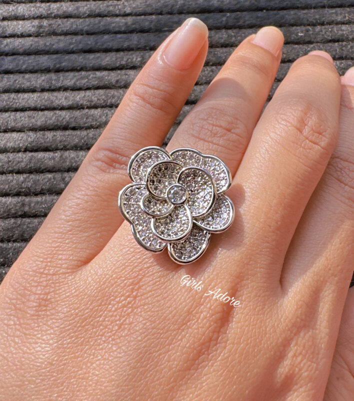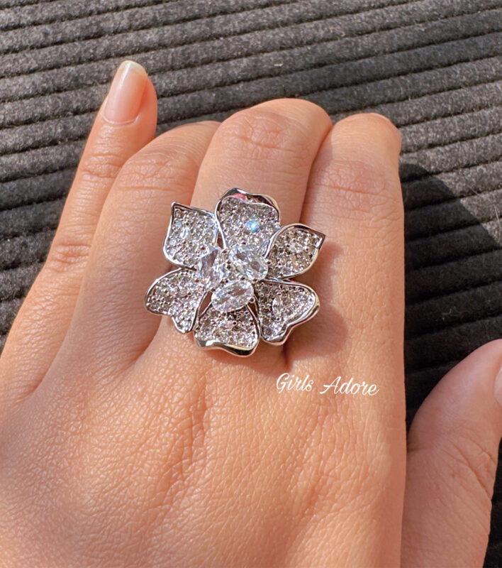 Silver-Plated Adjustable Double Flower Ring with CZ Stones