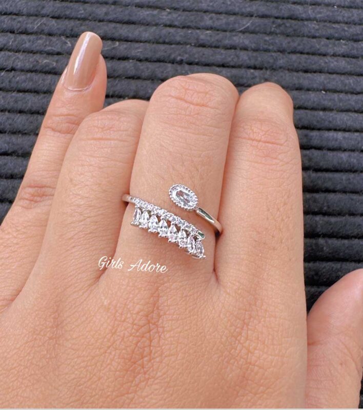 Adjustable Triple Row Diamond-Inspired Band Ring