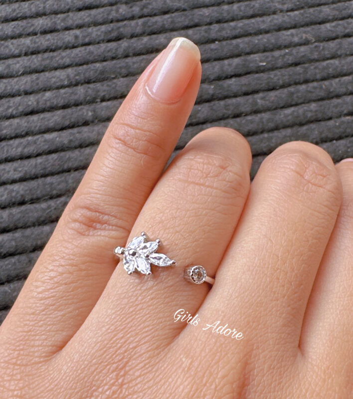Elegant Leaf-Inspired Silver-Plated Adjustable Ring