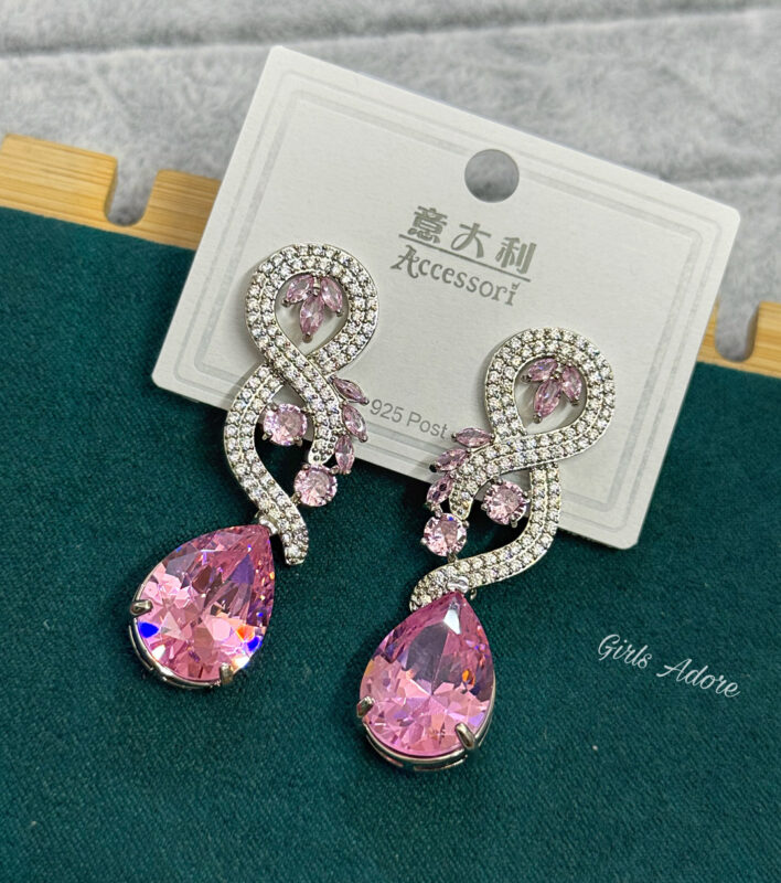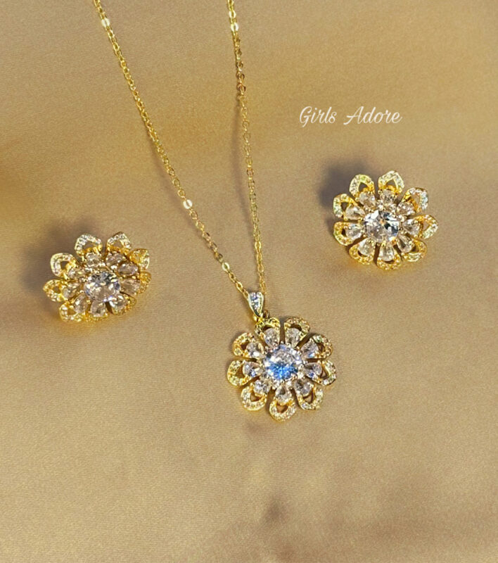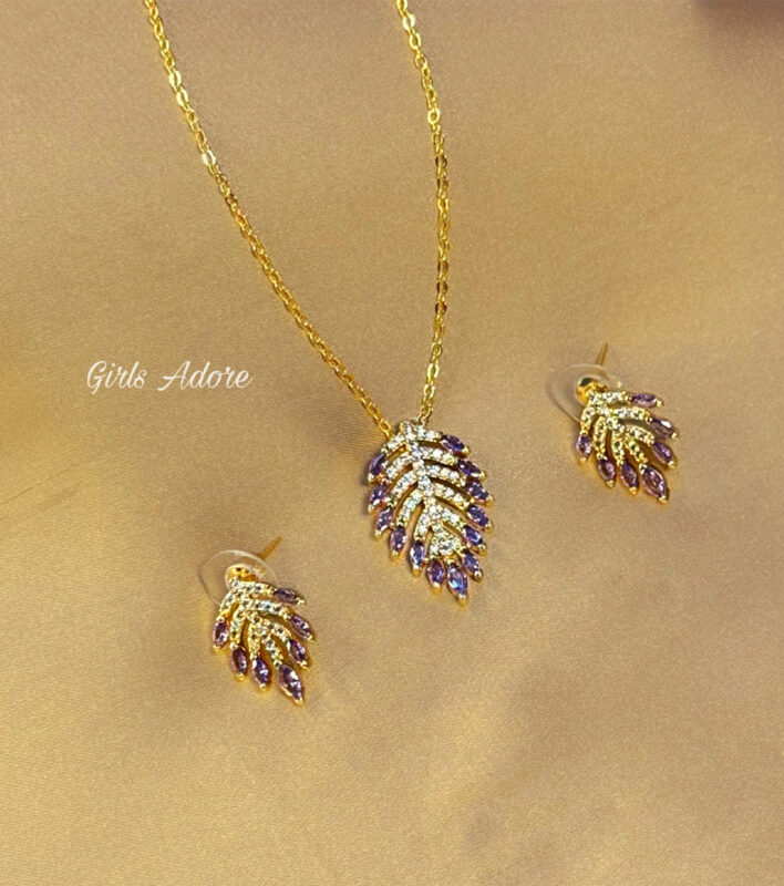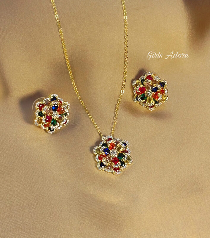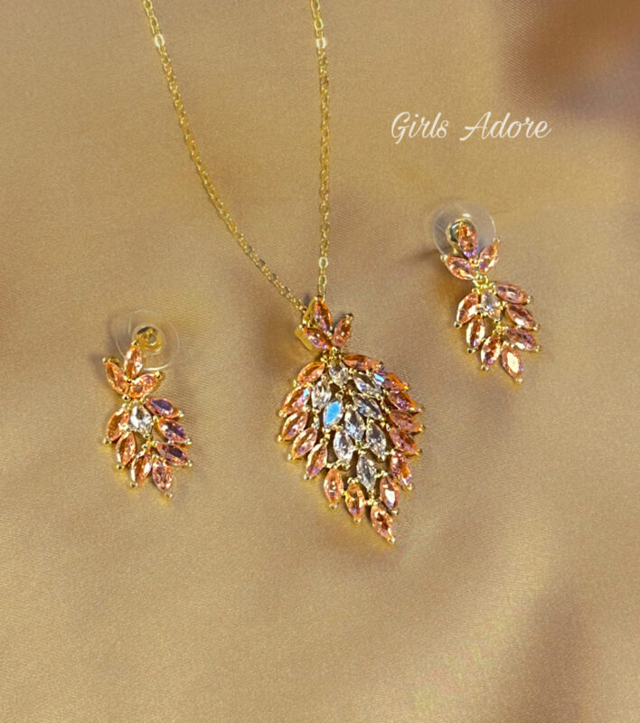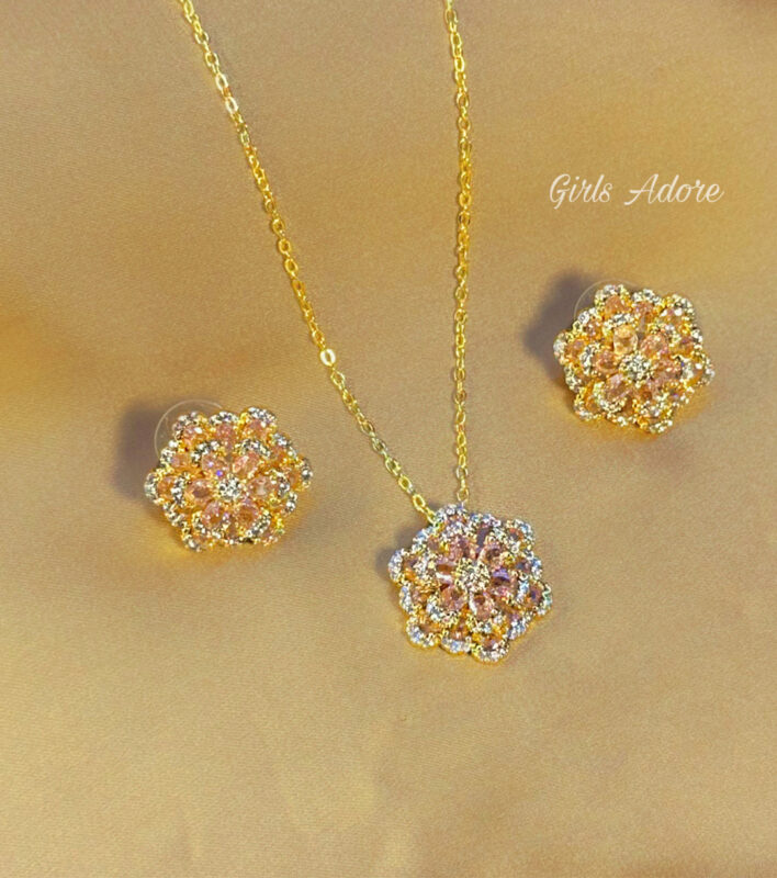 Blossom Glow Pendant Set – Pink stones wrapped in golden elegance