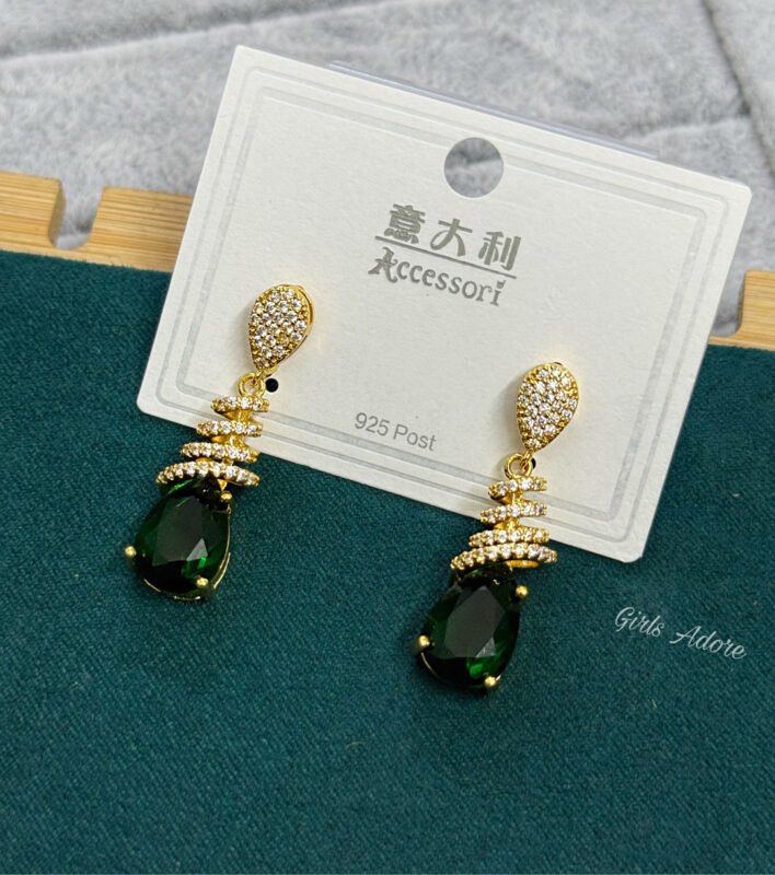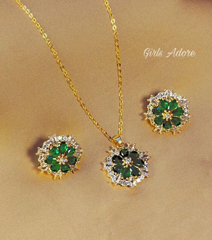 Blossom Glow Pendant Set – Green stones wrapped in golden elegance