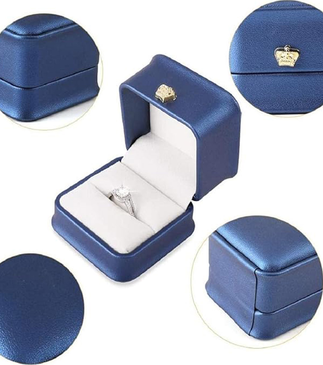 Crown Pu Leather Ring Box,Wedding Ring Box Earring Box Jewelry Boxes Jewelry Gift Ring Boxes for Proposal Engagement Valentines Day