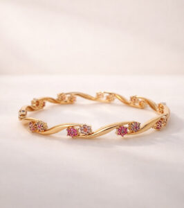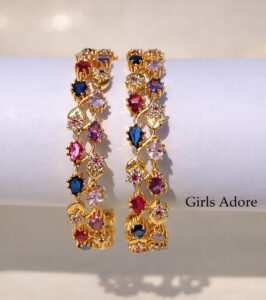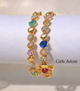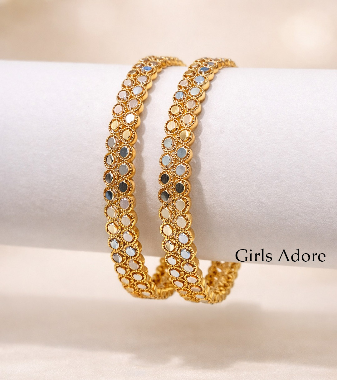 Shine with elegance in this premium gold-plated bangle set, beautifully embellished with dazzling crystal stones in a delicate circular pattern. Its rich golden finish and sparkling details make it perfect for weddings, parties, and festive occasions. A timeless piece designed for women who love graceful and luxurious jewelry.