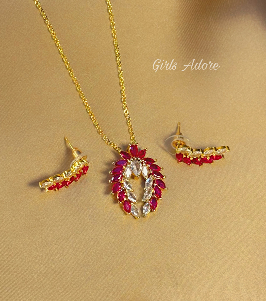 Premium gold-plated necklace & earrings set — crafted with ruby-inspired stones