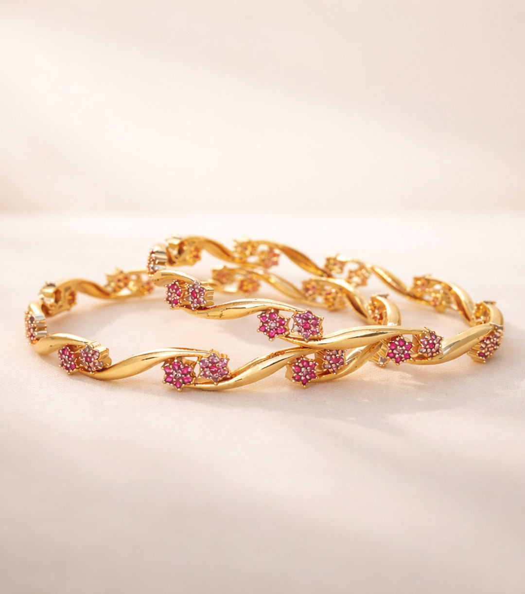 Taiyeba Gold Bangle – Elegant Twisted Design with Sparkling Stone Work